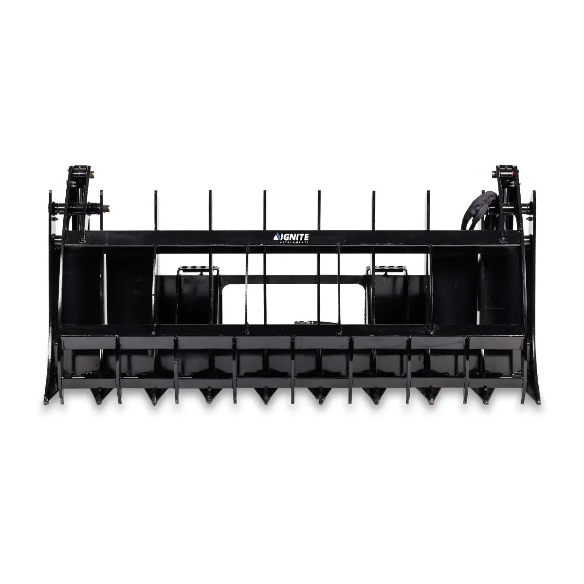 The Ignite Rake Grapple functions as a rake to collect surface debris. Once gathered, the clamshell-style grapple clamps down securely, allowing you to pile or load material with precision—all without changing tools.