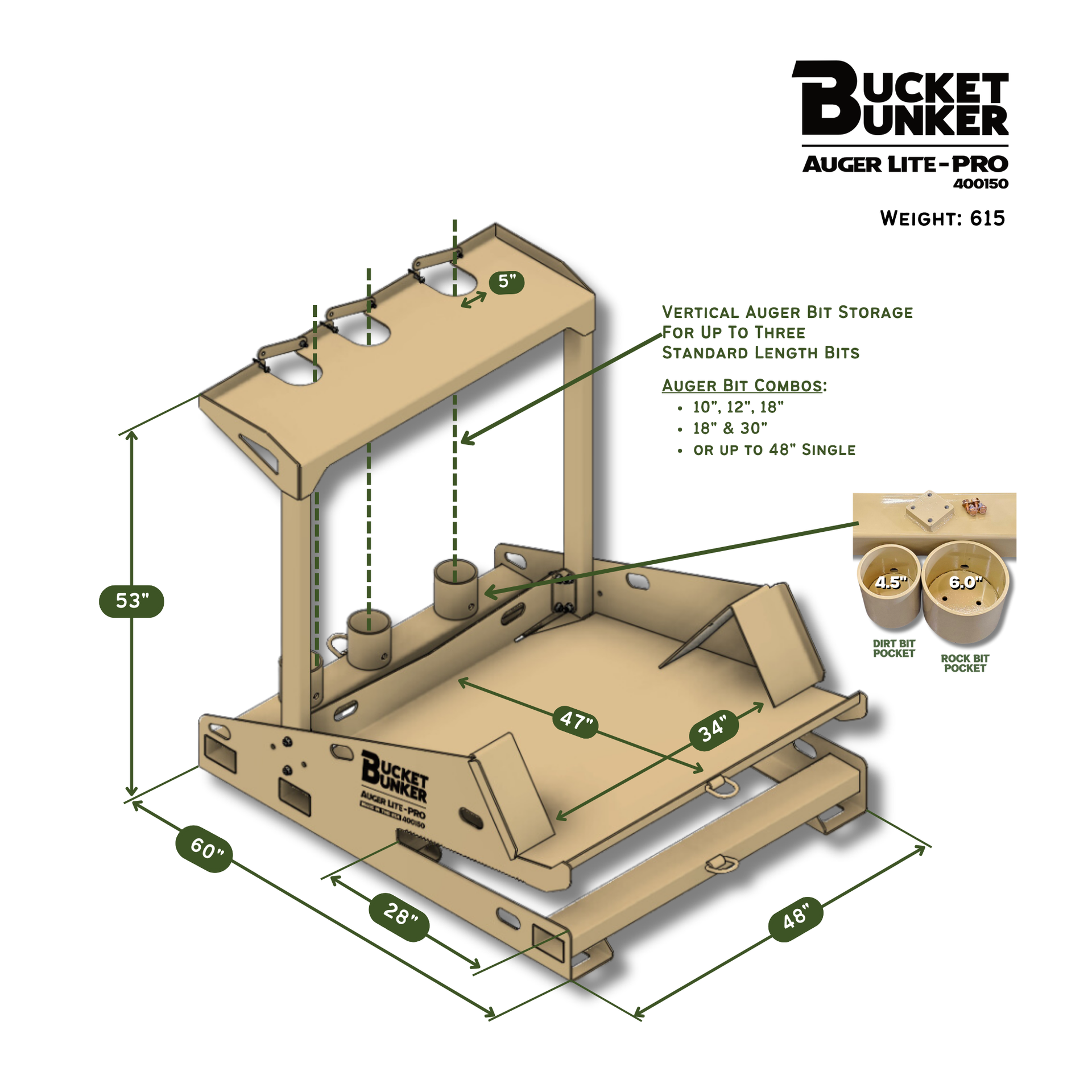 • Up to 3 Standard Length Auger Bits (With a maximum diameter of 48”)