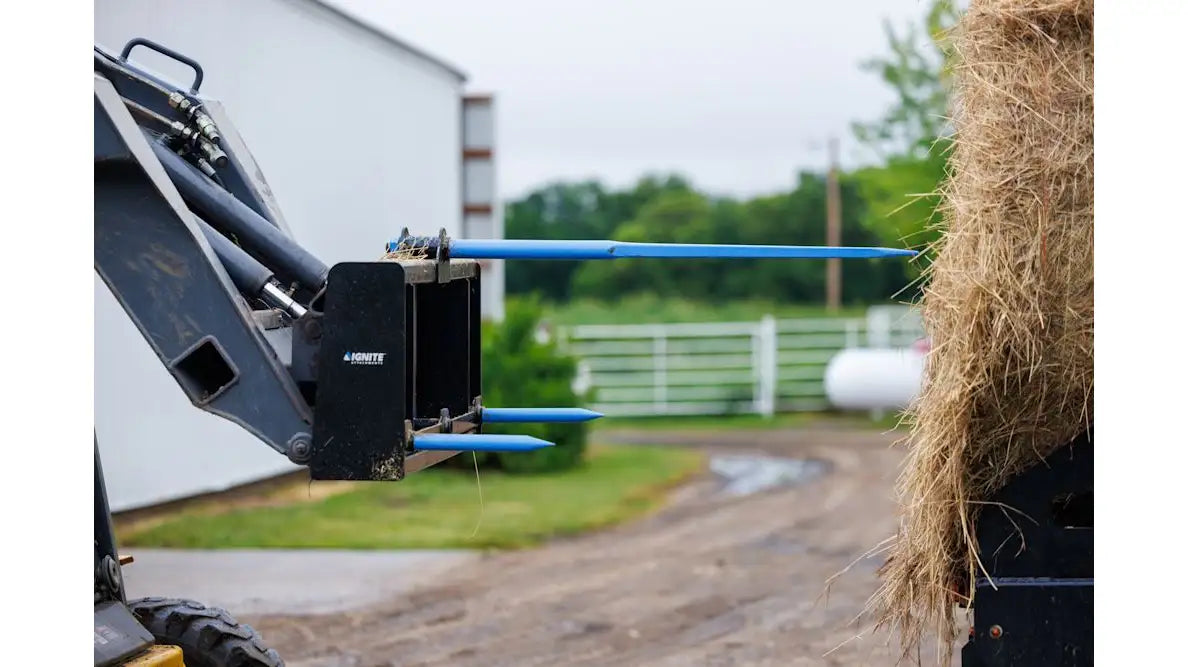 Operation Made Simple: Attach the Ignite bale spear and pierce the bale cleanly and securely. Then move, stack, or place it exactly where you need it—without the bulk or hassle. Built for rugged use, this spear is a must-have for every serious haymaker.